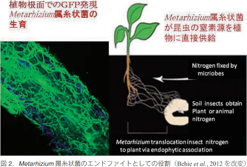 ※図:清水進 Metarhizium属糸状菌の最近の研究動向─分類と新機能を中心として─ 蚕糸・昆虫バイオテック 83 (2): 153-158(2014) 156ページより引用