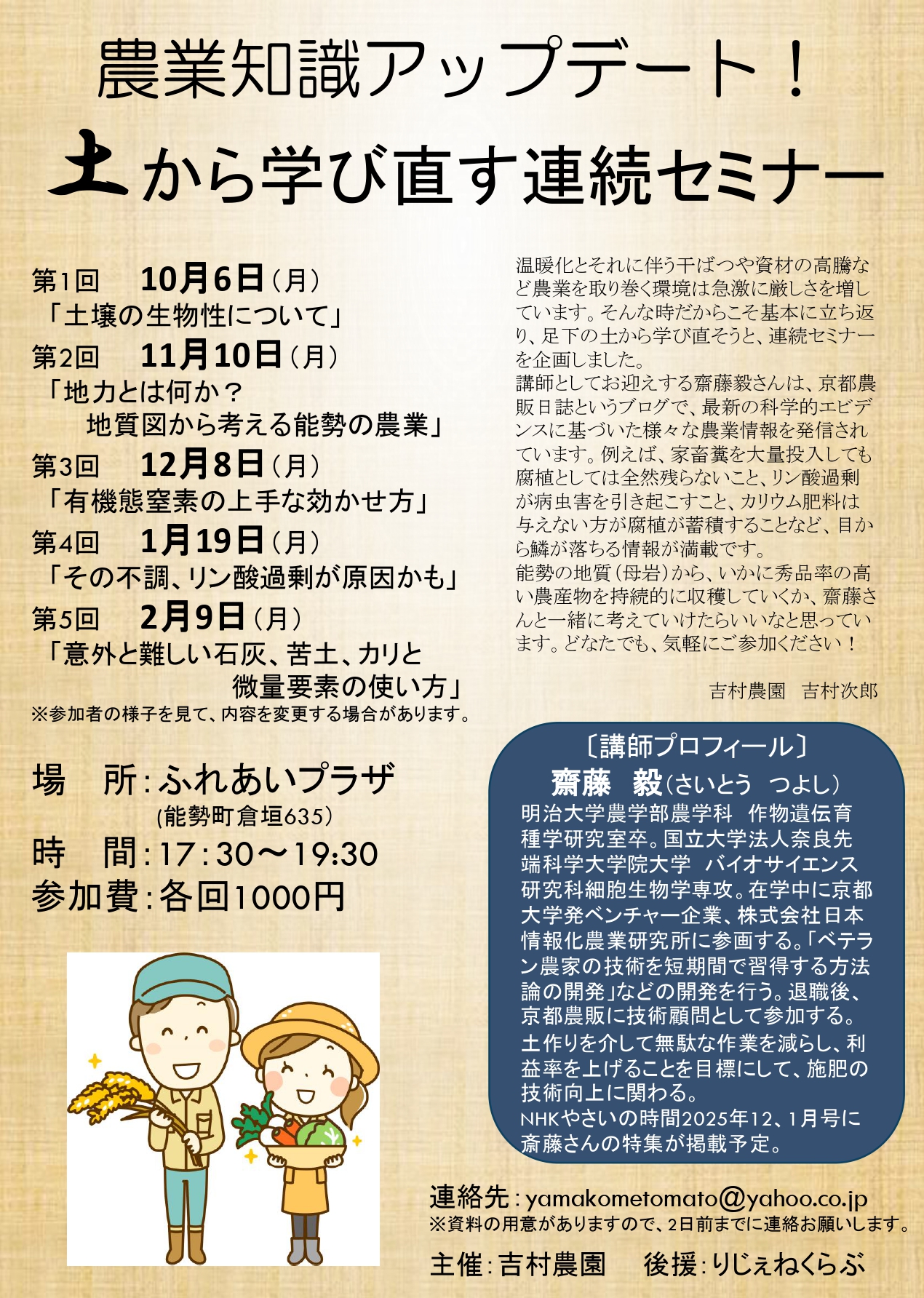第二回目は2025年11月10日(月)17:30〜で地力とは何か?地質図から考える能勢の農業を予定しています。