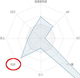 といった方法で石灰値を減らしますが、これでも長い間の栽培によって蓄積した石灰が正常値になることはなかなかありません。